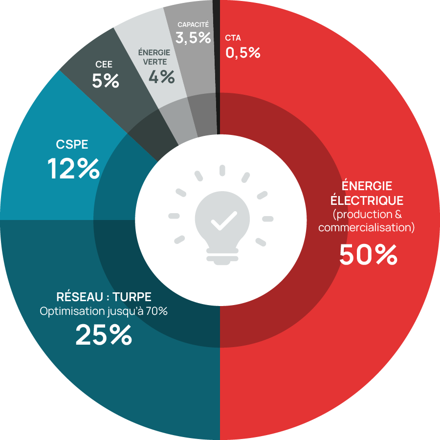 - Cette optimisation permet de diminuer le coût du tarif d’utilisation du réseau public d’électricité (TURPE) dans le montant total de votre facture.